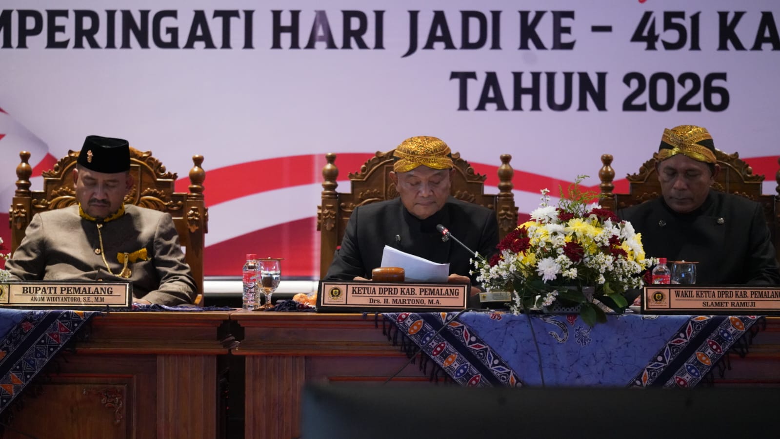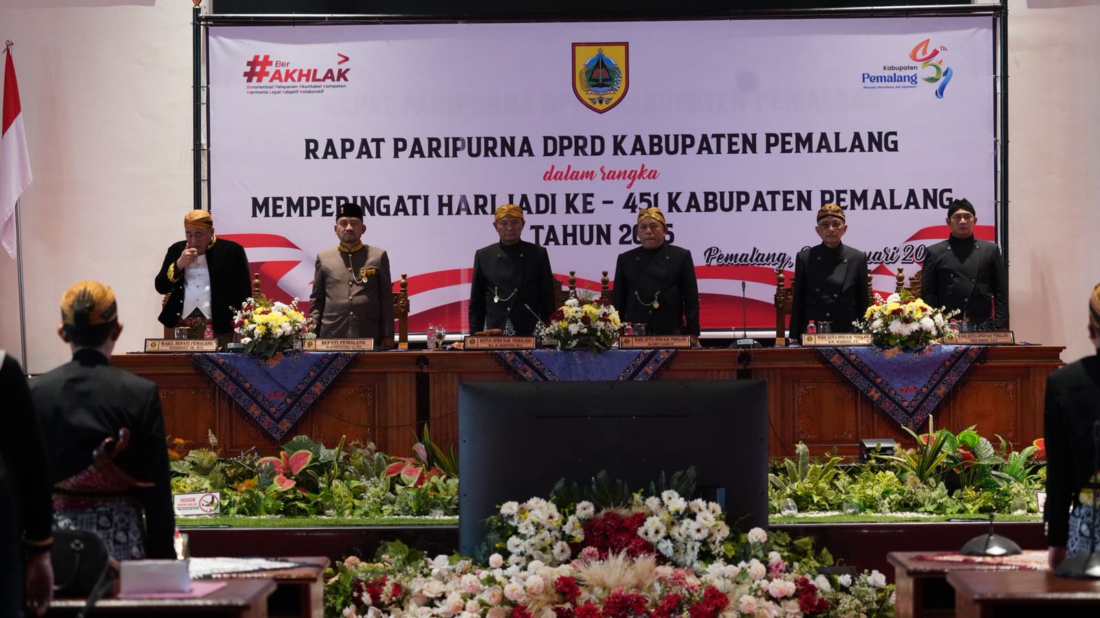 DPRD Kabupaten Pemalang menyelenggarakan Rapat Paripurna dalam rangka memperingati Hari Jadi Kabupaten Pemalang ke-451, yang berlangsung khidmat di Ruang Rapat Paripurna DPRD Kabupaten Pemalang, pada Sabtu (24/01/2026).